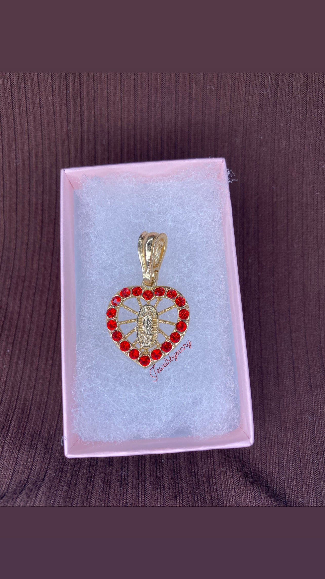 Red Virgen Mary heart pendant